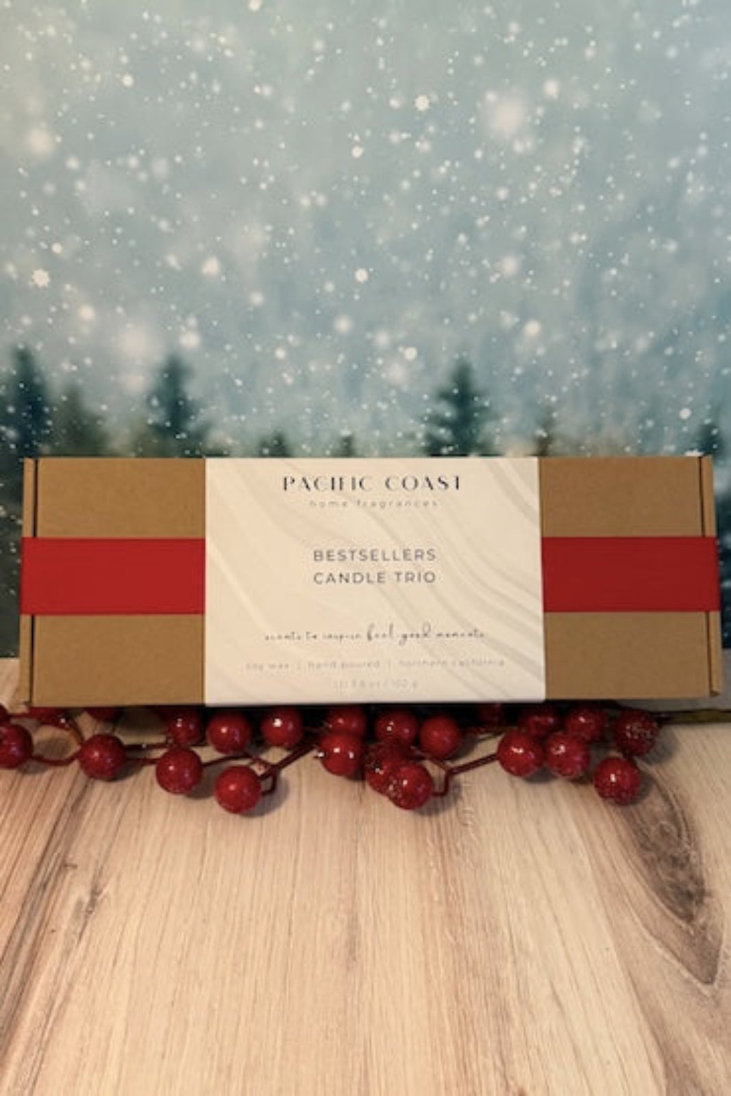 Our bestselling scents wrapped up in one merry package ready to gift. Three mini candles in the cutest glass jars will be the gift they love and remember. From your bestie to the hostess let your gift be their feel-good holiday moment.