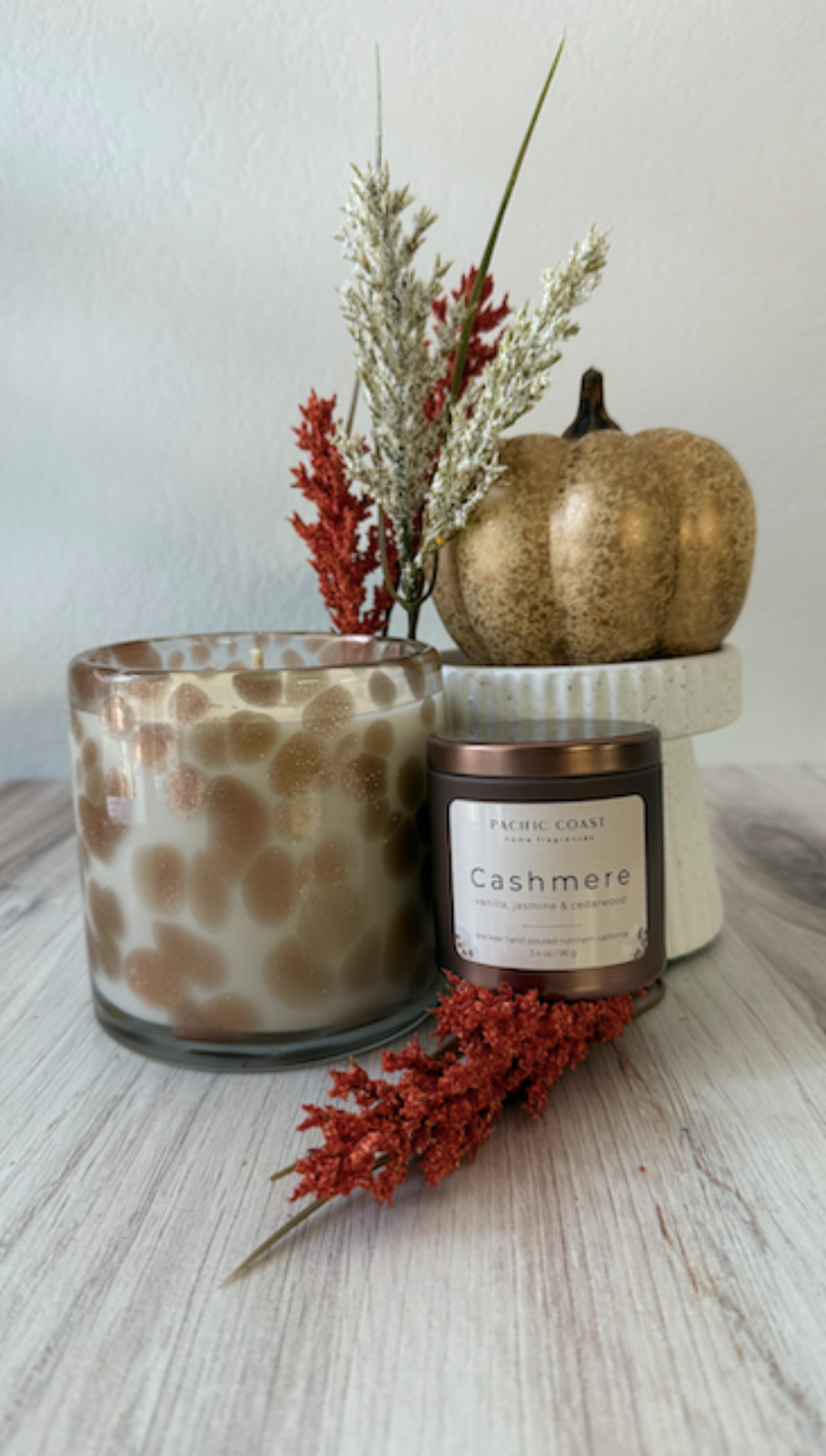 The Cashmere candle is warm and cozy with notes of sweet jasmine that are balanced with base notes of cedar wood and creamy vanilla. Light and soft, our Cashmere fragrance is that feeling of being wrapped in your coziest blanket ready to watch you favorite show by the fire. For the cooler days of Fall and Winter, our Cashmere candle is the ideal snuggle-worthy match.